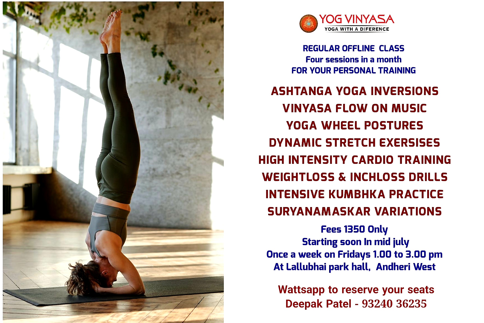 Regular Offline Class Vinyasa Flow on Music and much more